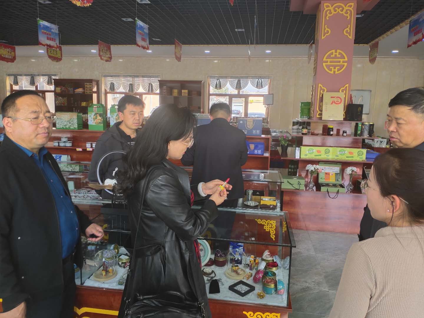 夏禾董事長(zhǎng)王桂桃女士隨鄂托克旗領(lǐng)導(dǎo)參觀文旅投特產(chǎn)禮品店